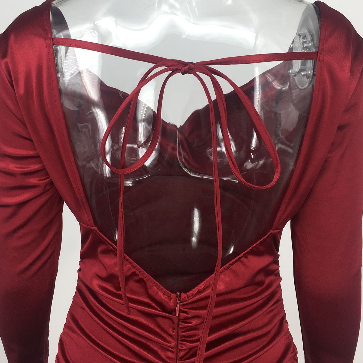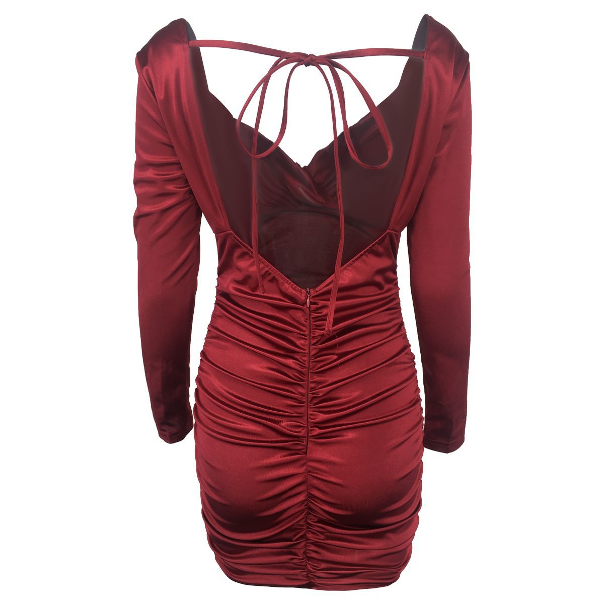 Open Back Strappy Pleated V-neck Dress Short Skirt Dress