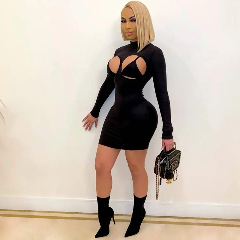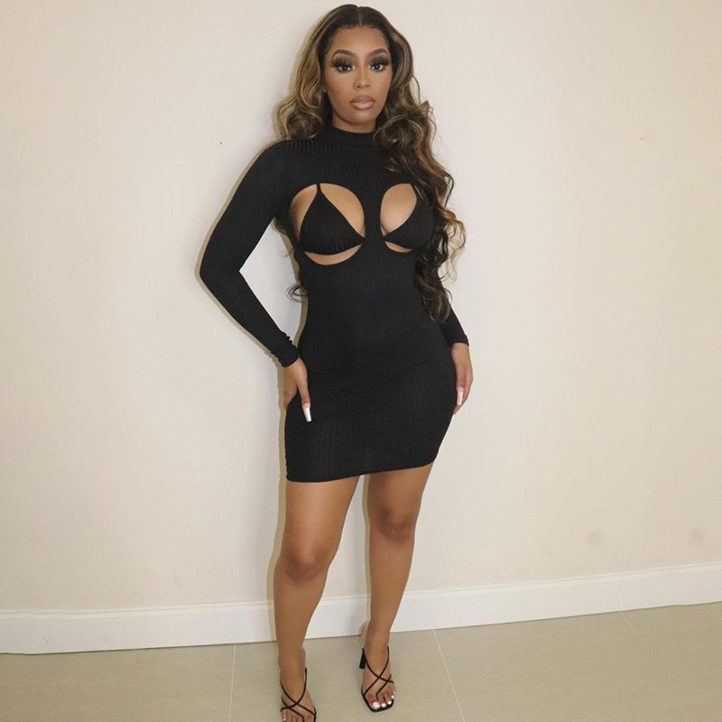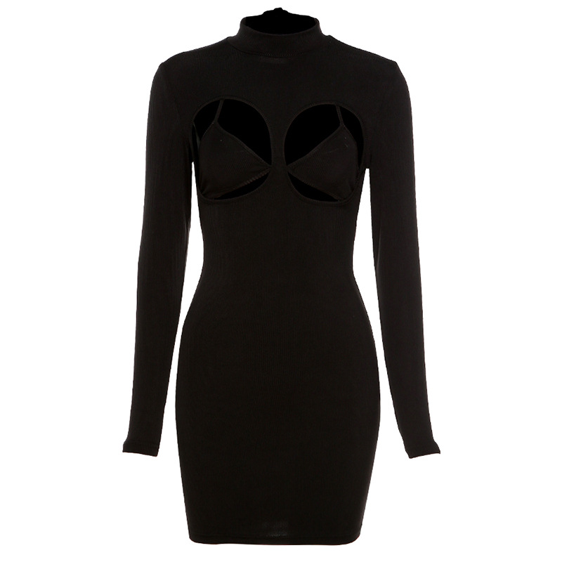 Hollow Stretch Slim Bag Hip Solid Color Dress