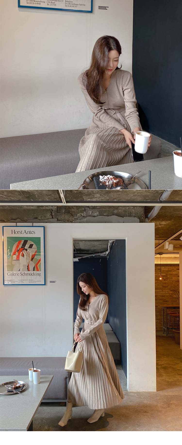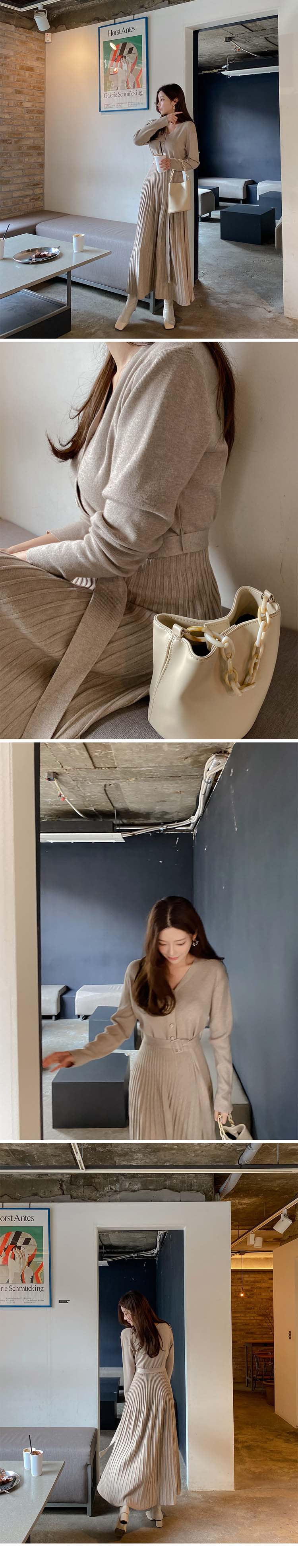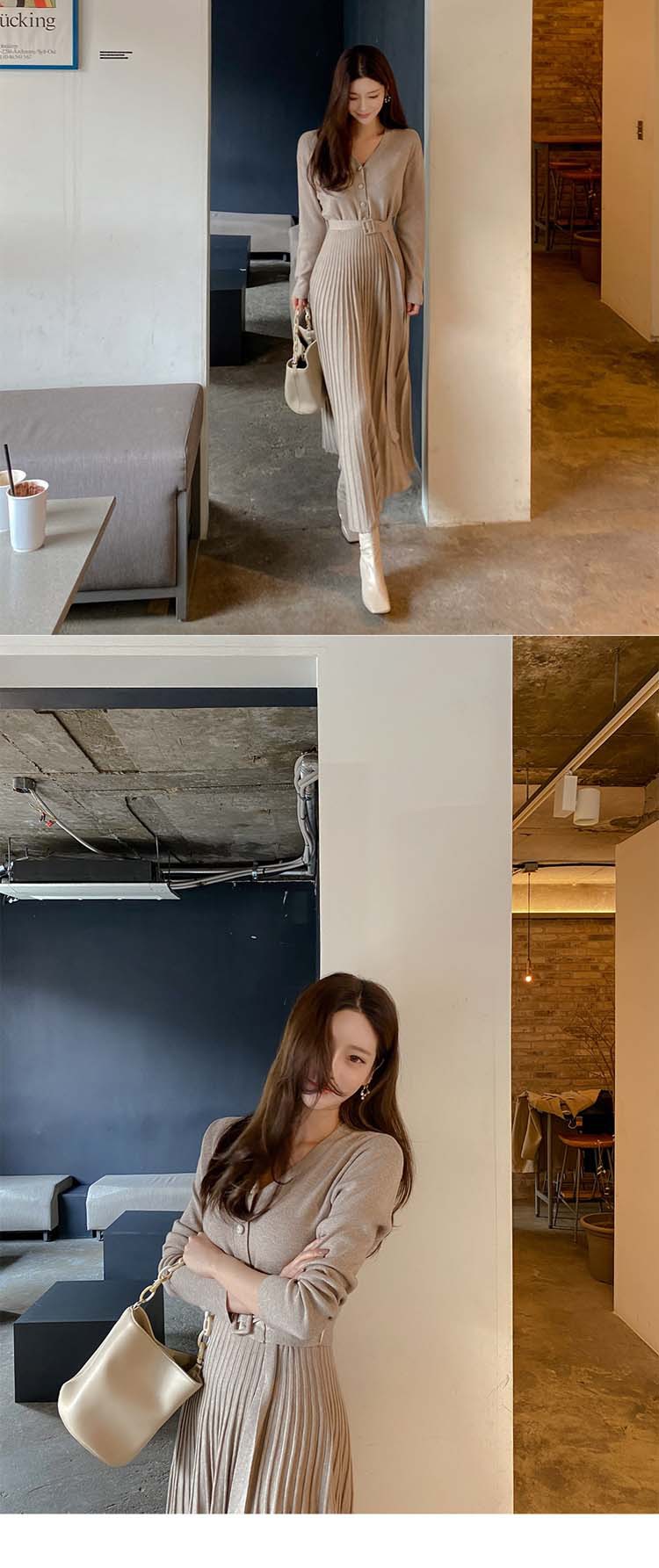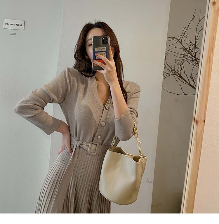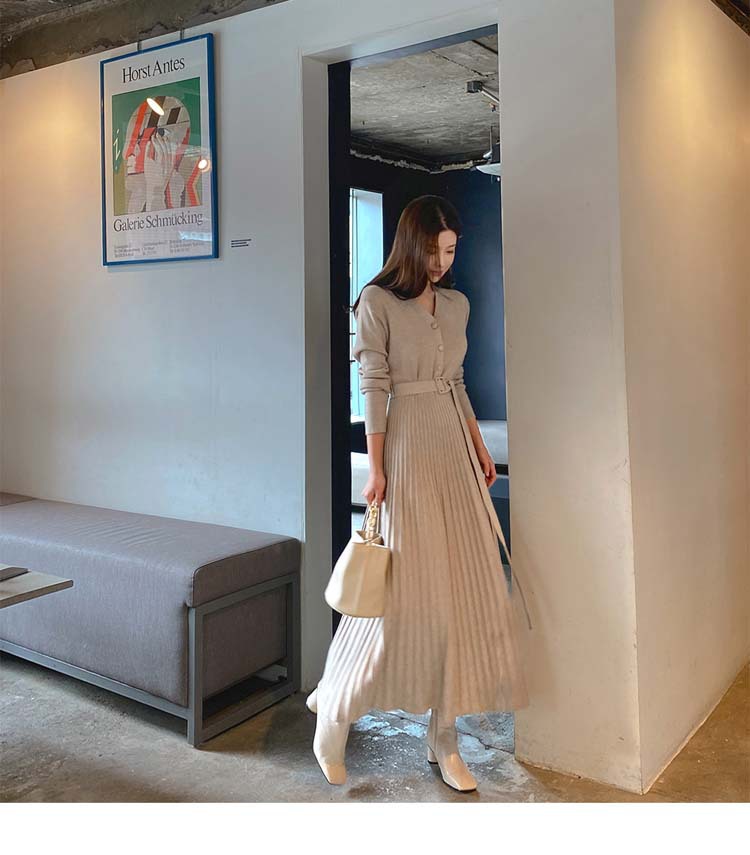 Knitted Dress New Temperament V-neck Mid-length Pleated Skirt