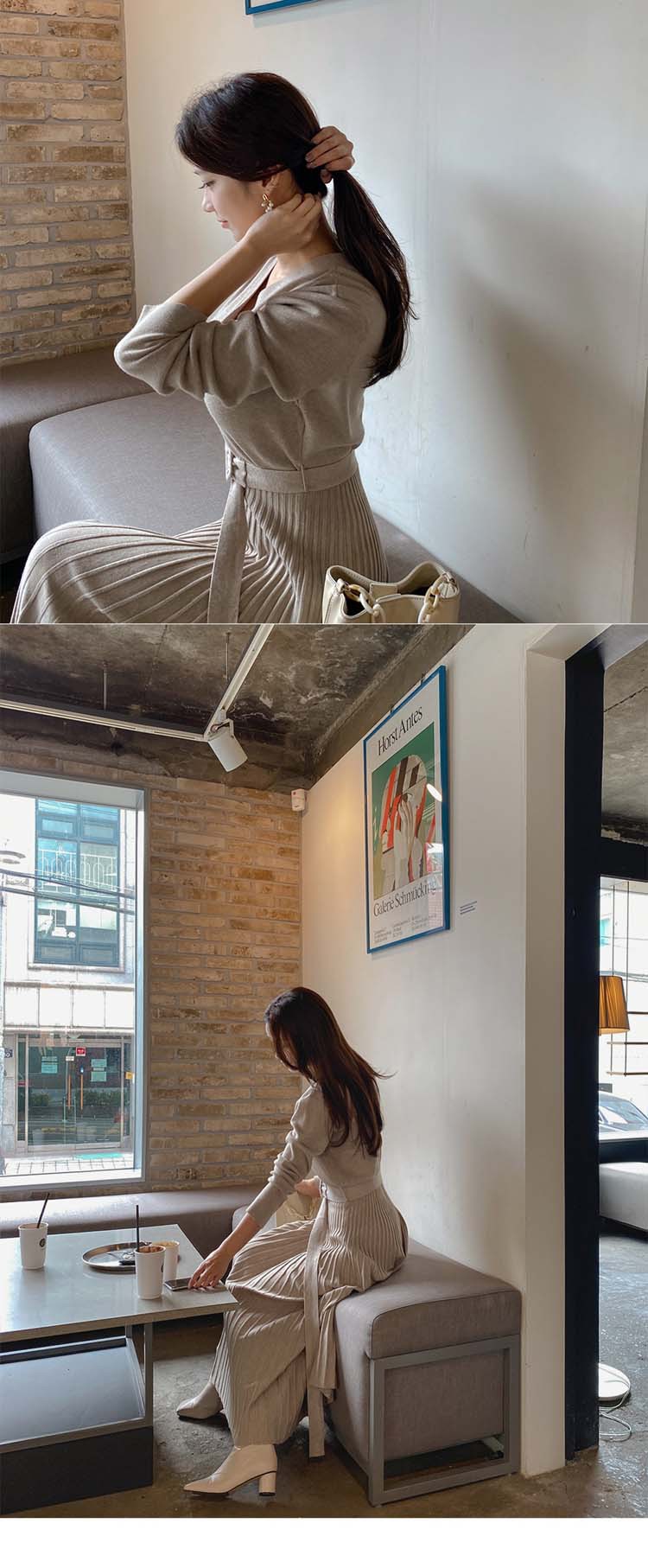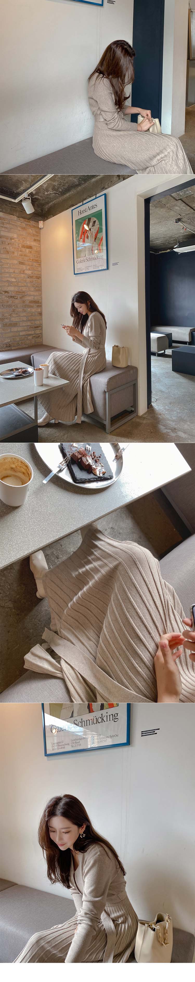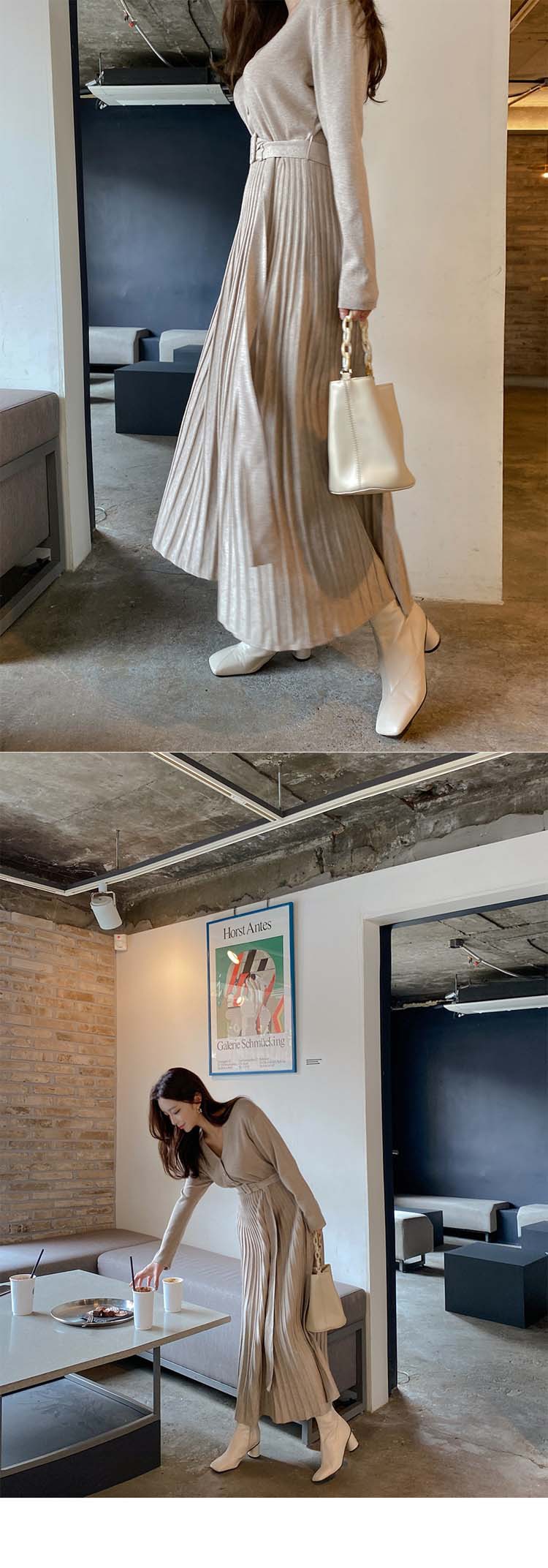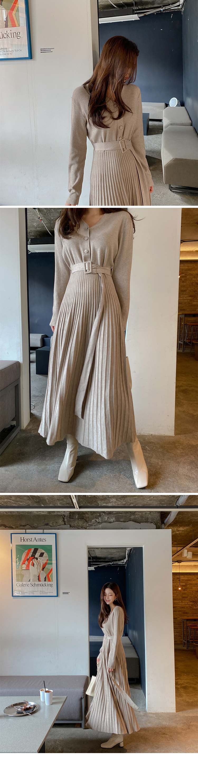 Knitted Dress New Temperament V-neck Mid-length Pleated Skirt