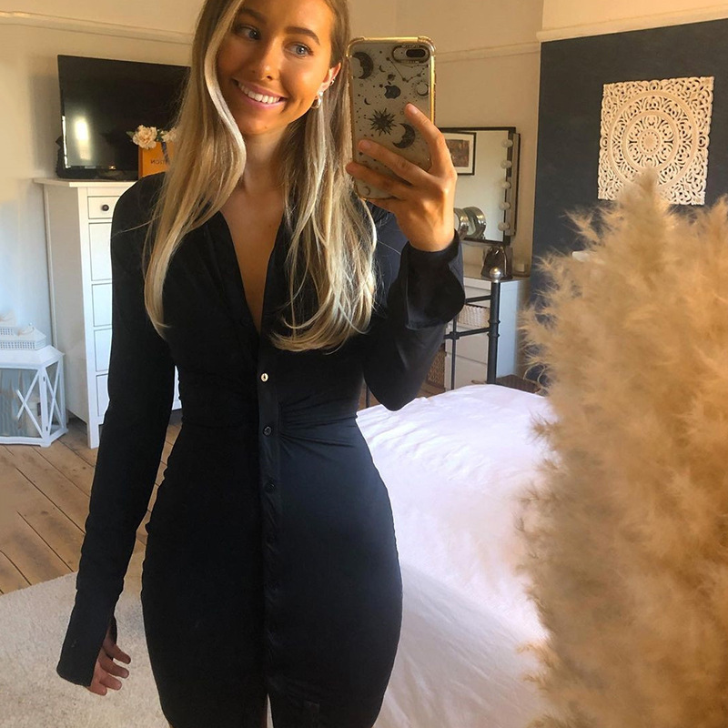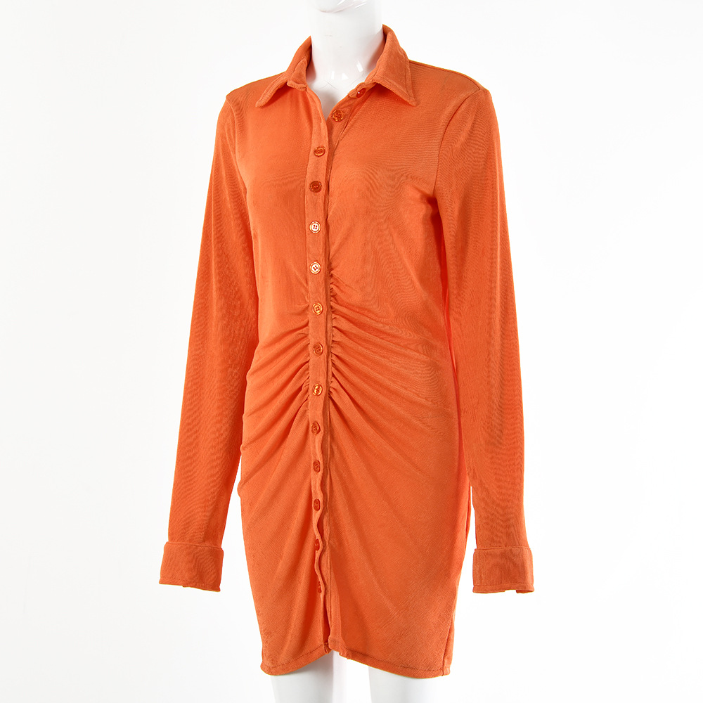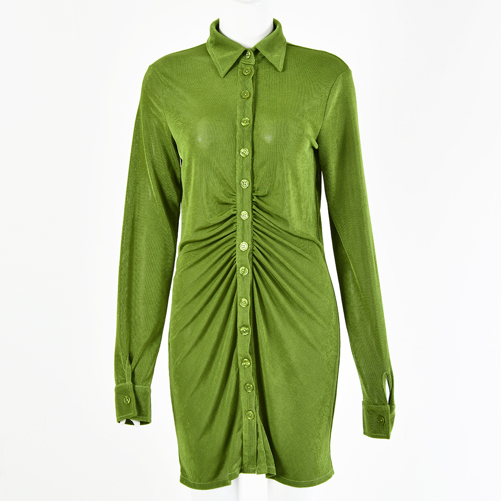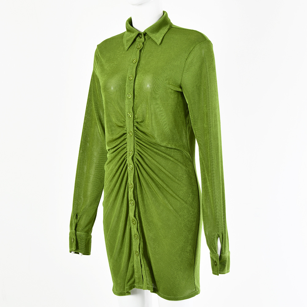 Solid Color Dress Women'S Sexy Long-Sleeved Lapel Single-Breasted Cardigan Skirt