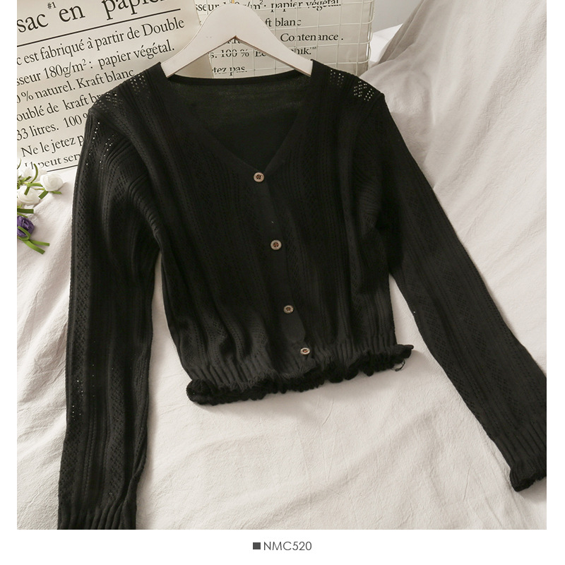 Sweet Wind Single Breasted Wooden Ear Edge Cardigan Long Sleeves