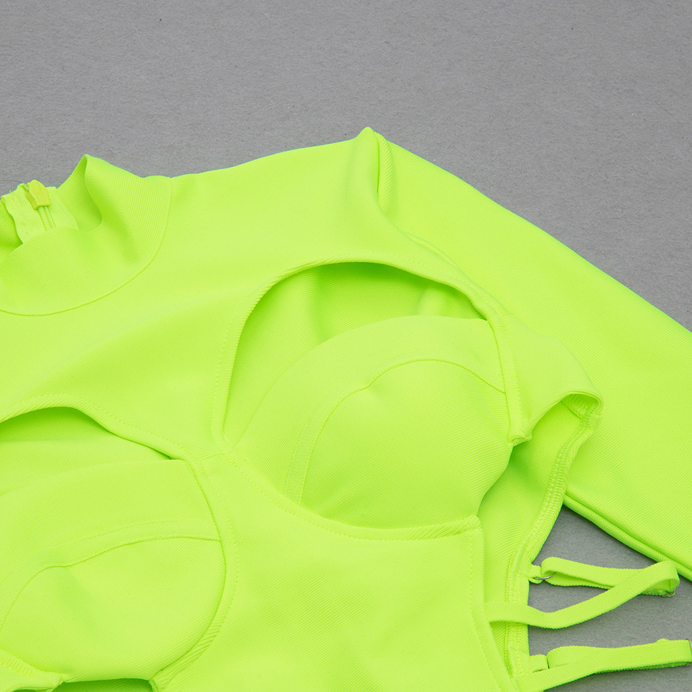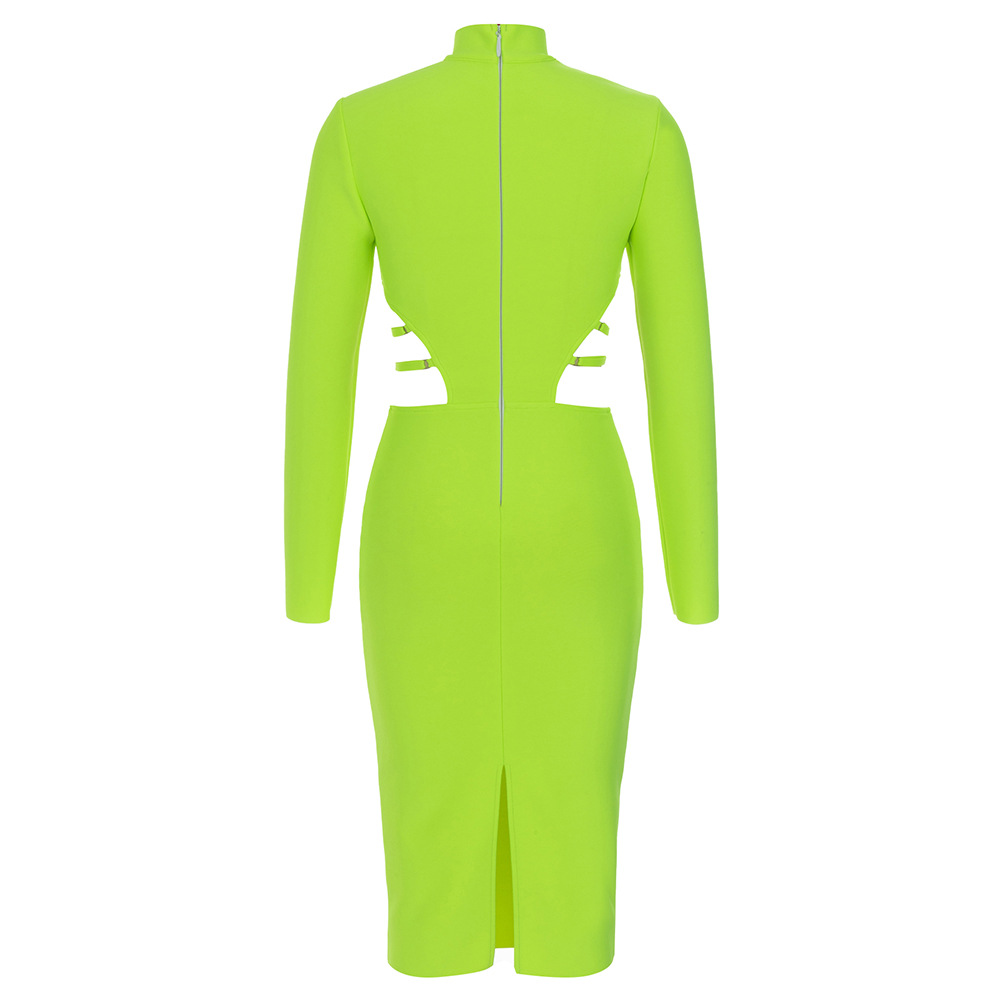 Retro Back Hollow-out Slit Slim-fitting Long Sleeve Dress