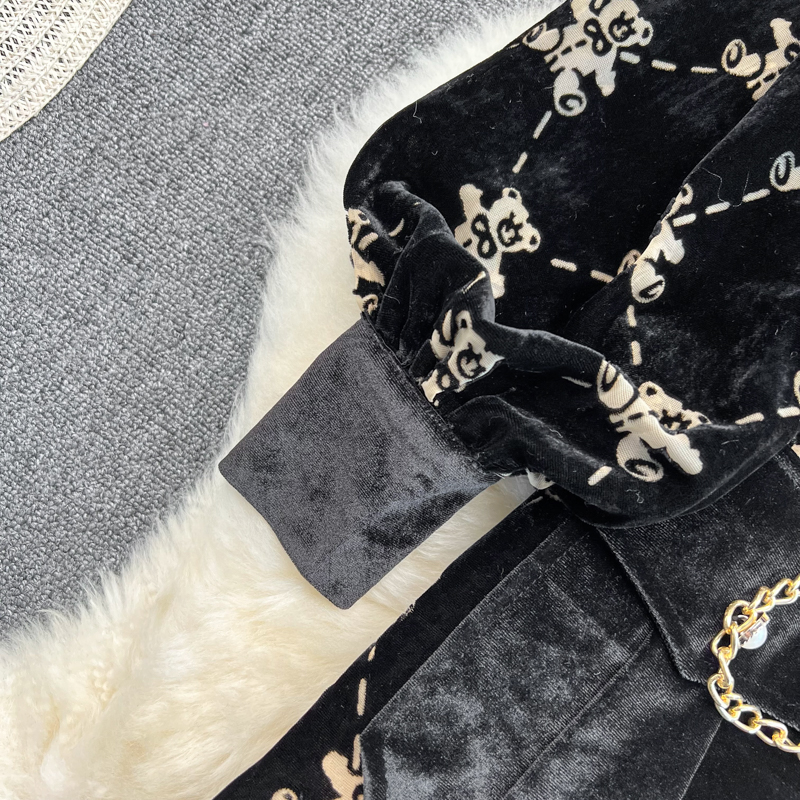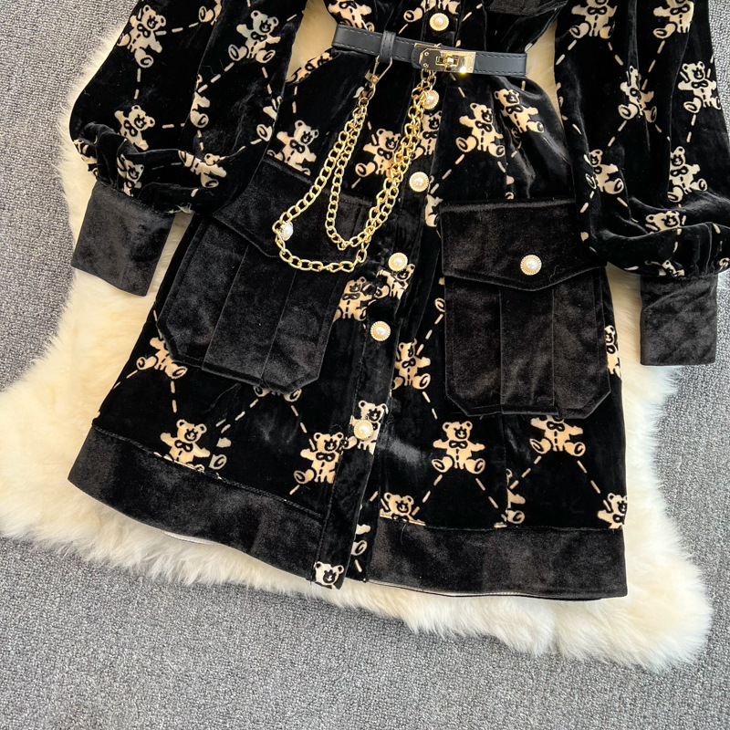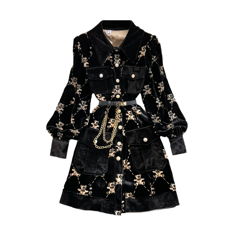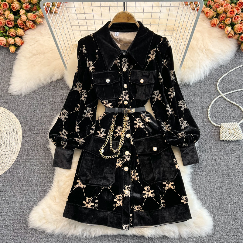 Single Breasted Lapel Gold Velvet Dress