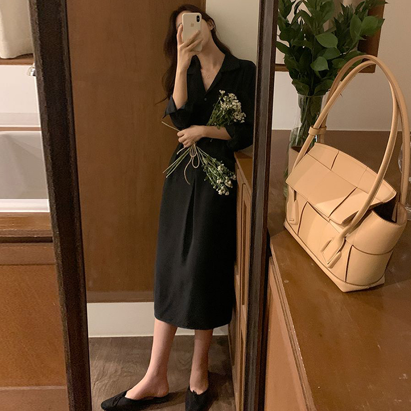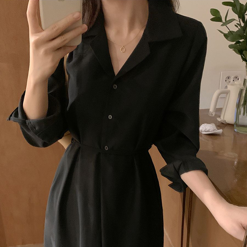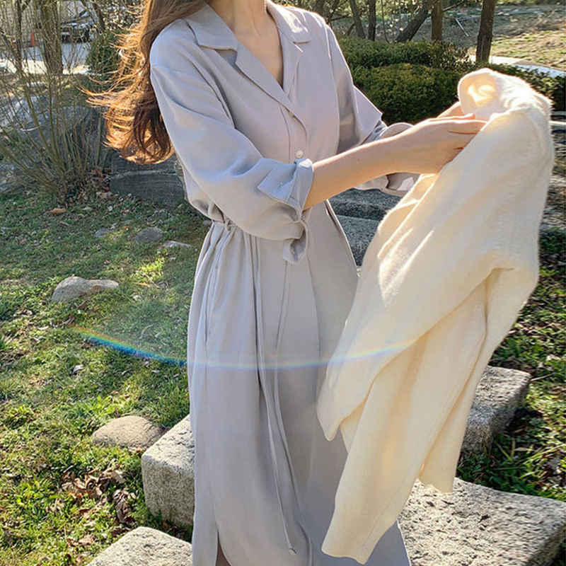 Women's Versatile Lapel Single Breasted Lace-Up Dress